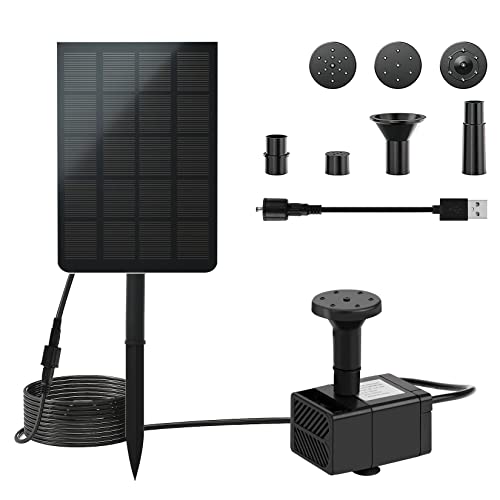 LEDGLE 2,5 W solfontän, USB-dammpump med filter vattenfontänpanel 7 sprayhuvuden, solpump pump 200 l/H flödeskapacitet för utomhusbruk, fontäner, trädgård, fågelbad, damm, fiskbehållare