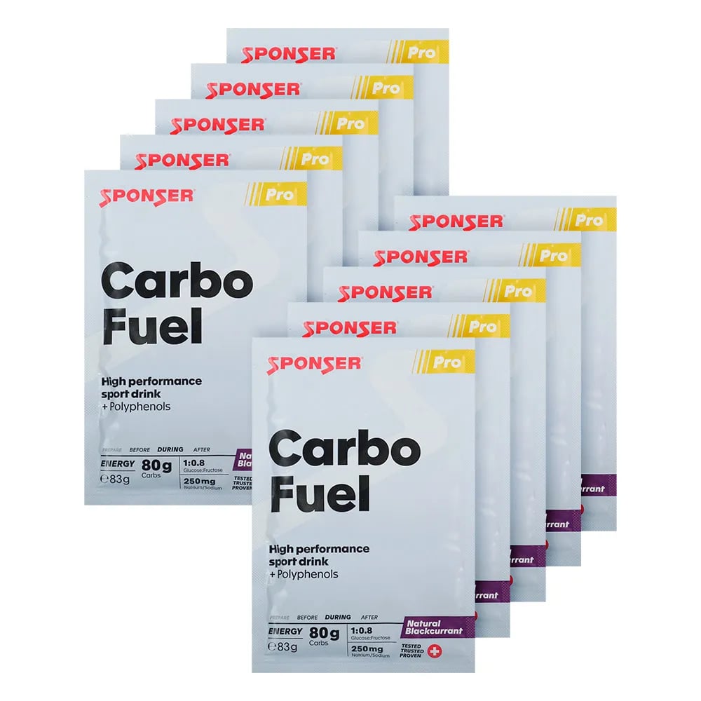 Sponser Sport Food Carbo Fuel Energy Drink Monodose Box Black Currant 83g 10 Units Durchsichtig