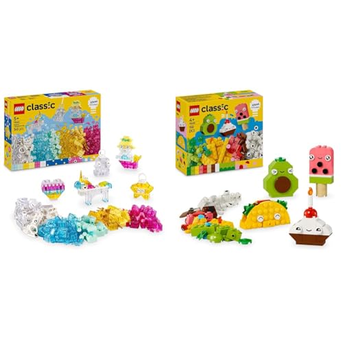 LEGO Classic Magical Transparent Box + Creative Food Friends Playset Colorful Building Bricks & Keyring Clips Set & Role-Play Toy for Boys and Girls 11040 + 11039