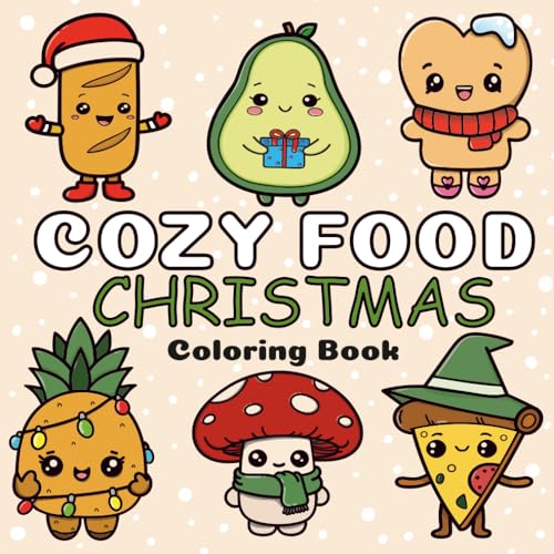 Cozy Christmas Food Coloring Book: Adorable Holiday Treats, Cute Festive Characters, Easy and Relaxing Designs for Kids, Teens & Adults