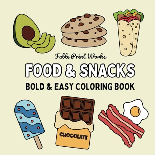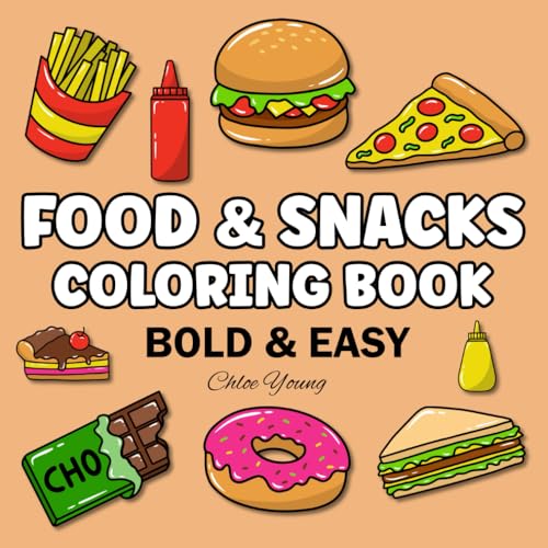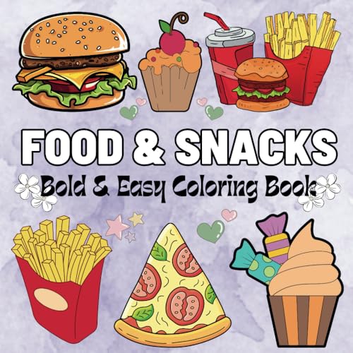 Food & Snacks Coloring Book: Fun and Simple Drawings with Bold Lines for Easier Coloring (Suitable for Both Kids & Adults)
