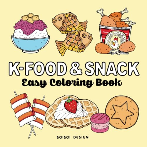 Korean Food & Snacks Coloring Book: 52 Bold and Easy K-food and K-snacks illustrations for Adults, Teens and Kids. Cute and Simple designs