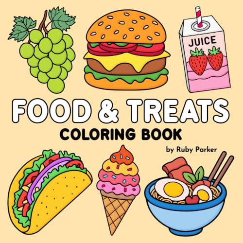 Food & Treats Coloring Book: Bold & Simple Designs for Adults, Teens and Kids, Variety of Foods, Snacks, Desserts and Drinks, Cute and Easy Illustrations