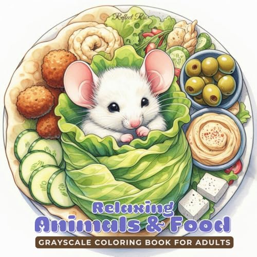 Relaxing Animals and Food Coloring Book: A Fun and Whimsical Adult Grayscale Coloring Book Featuring Cute Tiny Animals on Delicious Foods from Around the World