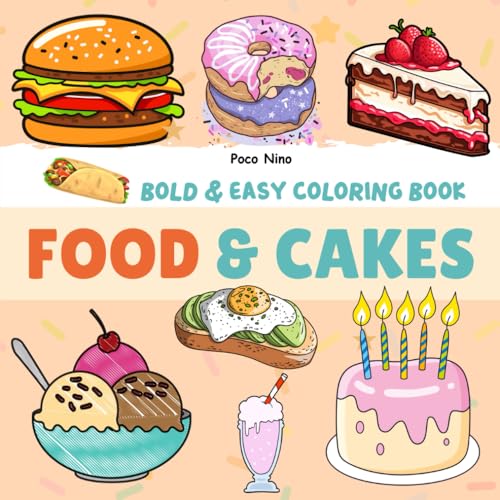 Food & Cakes: Coloring Book with Bold & Easy Designs for Adults, Teens and Kids for Relaxation