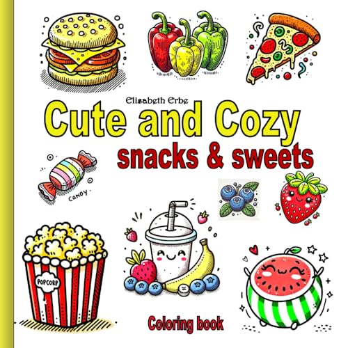 Cute and cozy SNACKS & SWEETS hyggy Food: Coloring book for girls and boys with easy and simple desing: Süßes Ausmalbuch für Jungen und Mädchen