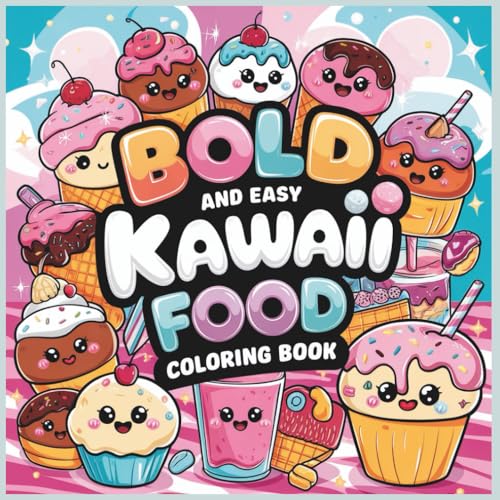 Bold And Easy Kawaii Food Coloring Book: Cute Coloring Book for Stress Relief, Featuring Kawaii Snacks, Smiling Desserts & Whimsical Food Friends