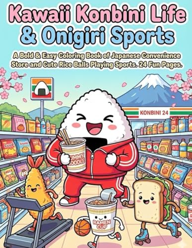 Kawaii Konbini Life & Onigiri Sports: A Bold & Easy Coloring Book of Japanese Convenience Store Food and Cute Rice Balls Playing Sports. 24 Fun Pages.