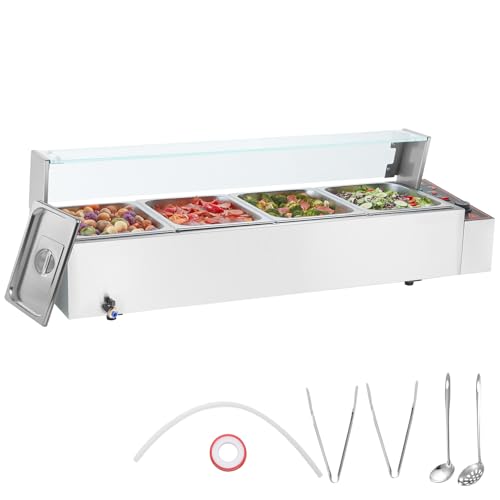 VEVOR Kommersiell matvärmare med 4 stekpannor med glasskydd, 1500 W, bänkskiva i rostfritt stål, temperaturkontroll 30-85 °C för catering, restauranger, silver, 1197 x 406 x 382 mm