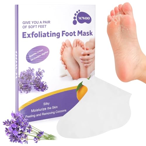 ACWOO Foot Peel Mask För Hård Hud, 4 Par Exfolierande Strumpor Fotmask, Plant Formula Moisturizing Socks, Callus Remover Fotmask För Reparation Av Klackar & Tar Bort Torr Sprucken Död Hud För