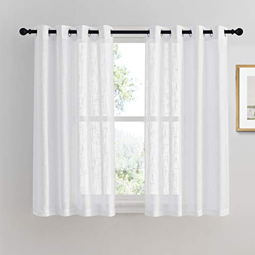 MRTREES Voile vita gardiner 148 tum hängande 2 paneler voile gardin panel stång ficka för dörr sovrum kök 55 x 48 tum hängande korta genomskinliga gardiner 140 cm x 122 cm