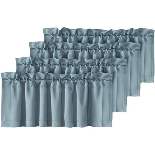YCDZSW Mörkläggningsgardiner korta gardiner, för köksfönster/badrum/vardagsrum/sovrum integritet dekorativ stång ficka kort vindruta gardinkappa gardiner, 132 cm B x 45 cm L (stenblå, 132 cm x 45 cm 4
