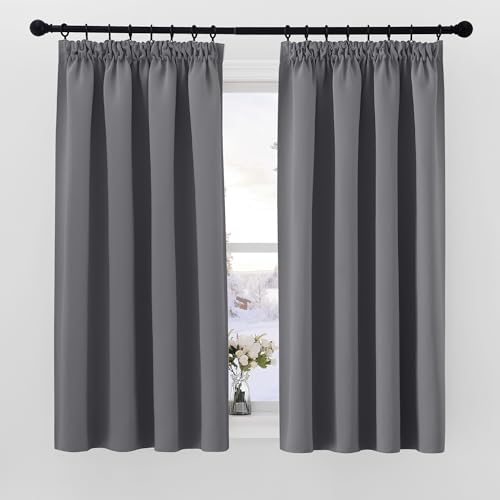 DWCN Gardiner ogenomskinliga gardiner med veckband mörkläggningsgardiner med gardinslipsar, gardiner korta gardiner kök sovrum termisk gardin köldskydd, 137 x 117 cm (höjd x bredd), grå, set om 2