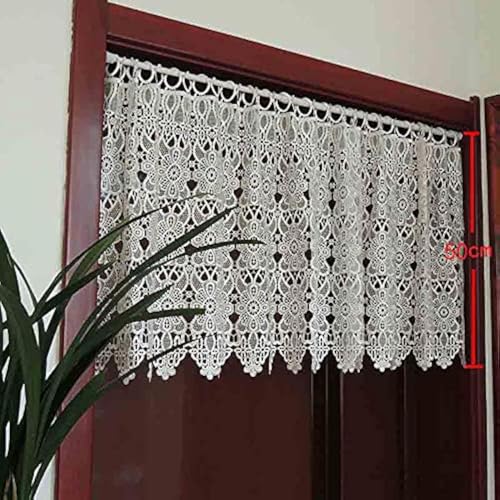 Yaland Fönstergardiner spets, korta gardiner, lantlig stil, bistrogardiner, öljettgardiner, fönstergardiner, dörrhänge med blommönster, vackert dekorerad (B x H 250 x 50 cm) vit 1 styck