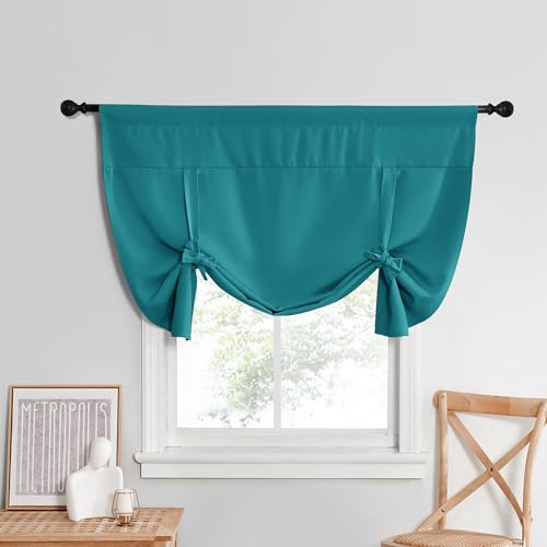 NICETOWN Korta gardiner justerbara fönstergardiner för sovrum, integritet, energibesparande knytskärm för badrum, bredd 52 x lång 114 cm, 1 panel, påfågel blågrön