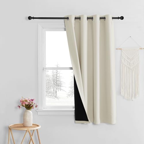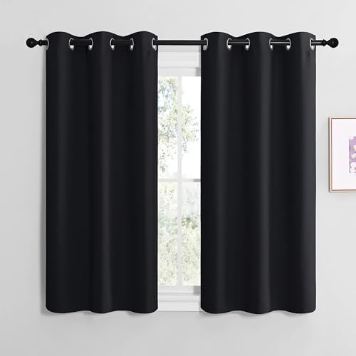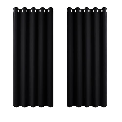 Nicetown Gardin svart ogenomskinliga korta gardiner med öljetter set om 2 termiska gardiner, köldskydd, fönster, gardin, moderna gardiner, vardagsrum, kort, mörkläggningsgardin, fönstergardiner, H 137