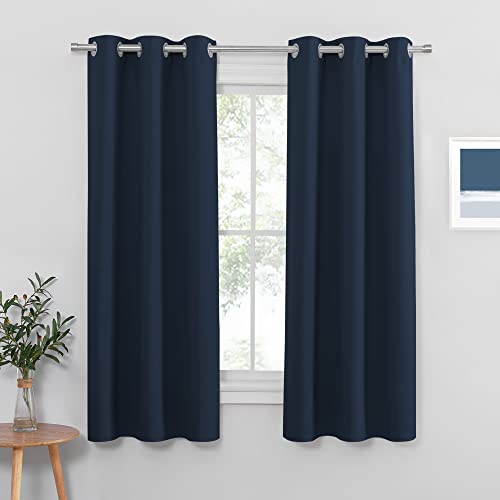 DWCN Marinblå mörkläggningsgardiner för vardagsrum, korta gardiner för litet fönster, mörkläggningsgardiner för rum för pojkrum, källare, 76 cm längd sovrumsgardiner – 102 cm x 76 cm, marinblå, 1 par