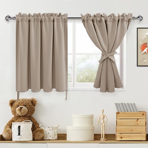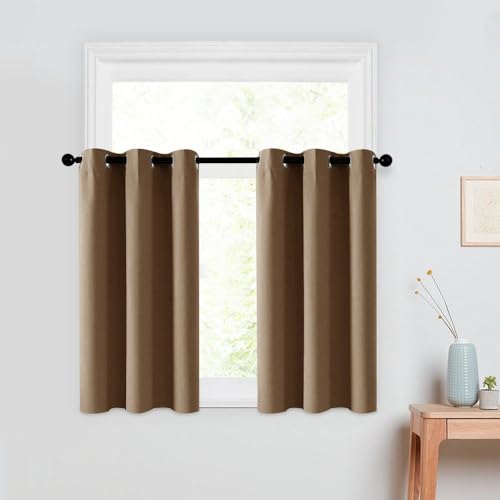 DWCN Korta mörkläggningsgardiner för sovrum, korta gardiner för litet fönster, termiska gardiner för kontor, 91 cm gardiner för kök, källare – B 132 x L 81 cm, kamel, set med 2
