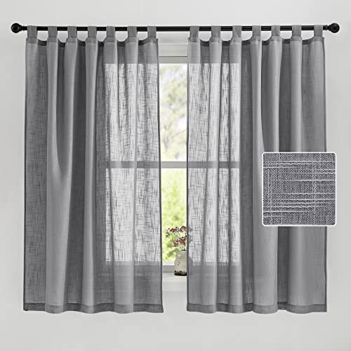 Pony Dance 2 st. korta gardiner kök sjal – halvtransparent gardin linneutseende luftiga gardiner med slingor korta gardiner grå vardagsrum, H 160 x B 140 cm, mörkgrå