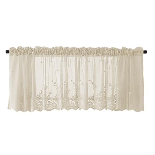 Besttoolifes Korta spetsgardiner för fönster, vita spetsgardiner, gardinkappor med stångfickor för kök eller badrumsfönster, korta gardiner, heminredning (beige)