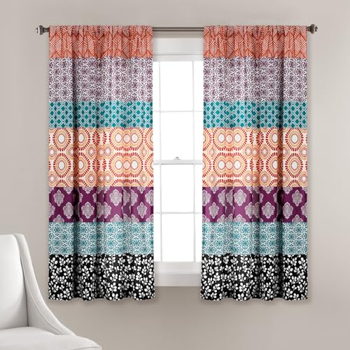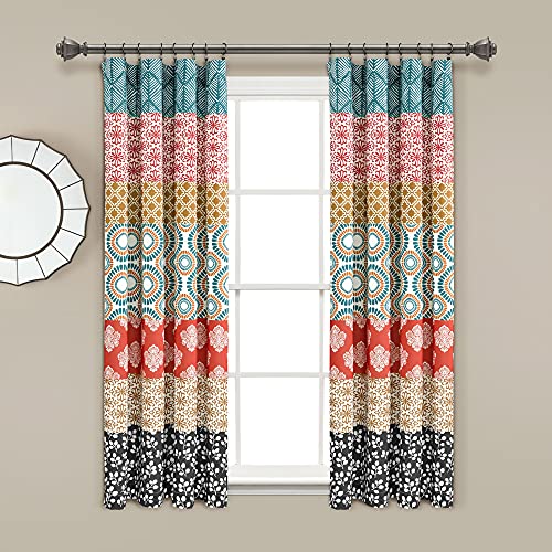 Lush Decor Bohemiska randiga gardinlängder, par, 132 x 160 cm (B x L), turkos och orange, färgstarka korta gardiner i maximalistisk bohemisk stil, för sovrum, vardagsrum och matsal