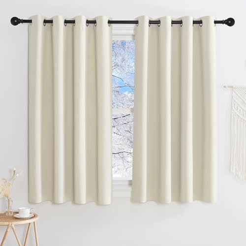 MIULEE Mörkläggningsgardiner 2 stycken, Beige Moderna Sovrum Gardiner Anti-Ljus, Sovrum Värme- och köldisolerande, Korta Gardiner för Fönster, 140 x 160 cm