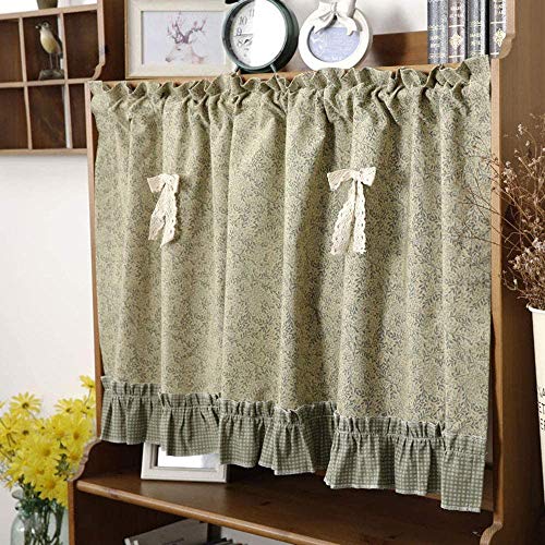 rUrEu Gardiner, bomull köksgardin retro korta gardiner badrum halv gardin café gardin med blommönster amerikansk lantlig stil grön/B 130 cm x h 100 cm