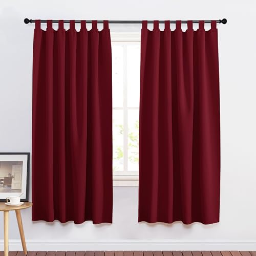 Pony Dance ogenomskinliga gardiner, Korta, med öglor, för barnrum och vardagsrum, isolerande mot kyla, julgardiner, set med 2 st., 160 x 140 cm (H x B), röd
