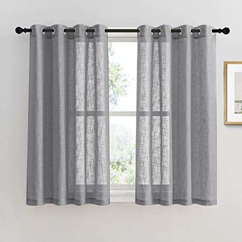 Pony Dance gardiner, korta, linneutseende, för kök, dekorativa skynken, halvtransparenta voile-gardiner med öljetter, set om 2 stycken, H 137 x B 132 cm, mörkgrå
