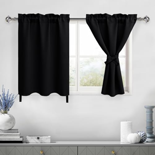 DWCN Svarta mörkläggningsgardiner för vardagsrum, sovrum, litet fönster – 86 x 61 cm korta termiska gardiner för café, pojkrum, kök, källare – 1 par