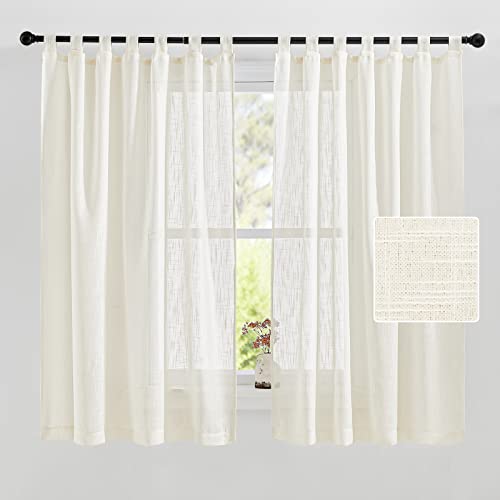 KOUFALL Korta gardiner för badrumsfönster, boho linne kafé rena små fönstergardiner för sovrum, gräddfärgad elfenben benvit