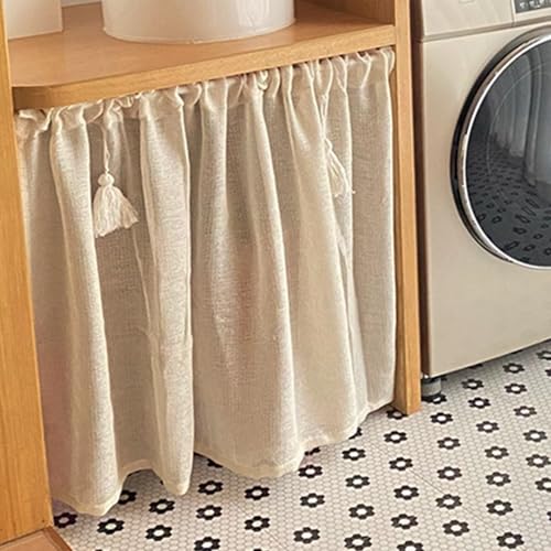 GUAWJRZDP Retro bomull och linne korta gardiner, underbänksgardiner, nordisk stil dörrgardiner, skuggning och ventilation, tofsdekoration, stavinstallation, B 150 x H 80