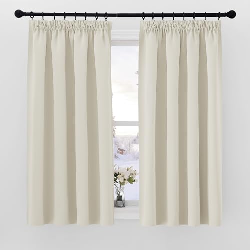 PONY DANCE Gardiner, kort, mörkläggningsgardin, veckband, set om 2, ogenomskinliga, med veckband, termiska, korta, H 145 x B 140 cm, ljusbeige