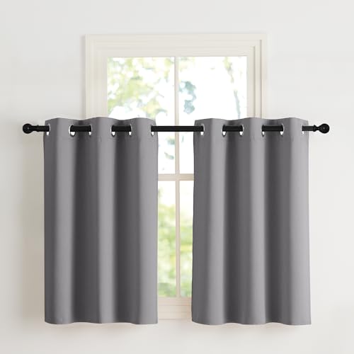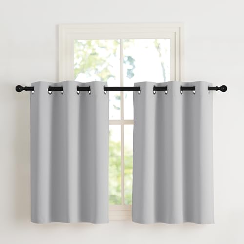 Nicetown Köksgardiner set om 2 stycken H 90 x B 107 cm, fönstergardiner, ogenomskinliga gardiner, korta fönster, gardiner, ljusgrå, mörkläggningsgardiner med öljetter, kort gardin, moderna termiska