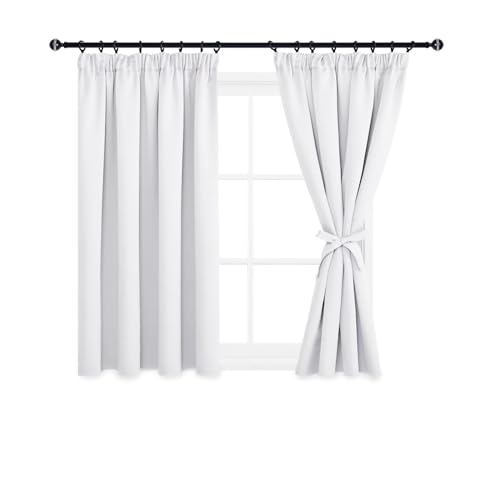 PONY DANCE totalt mörkläggande vita gardiner - korta gardiner med öljetter för små fönster, för barnrum, termiska interiörgardiner, 2 st, 140 x 145 cm