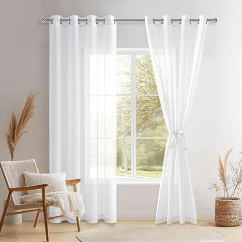 DWCN Sheer Voile gardin med öljetter gardiner korta genomsläppliga gardiner vit gardin transparent, vit, 240 x 132 cm (H x B),