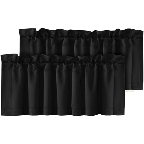YCDZSW Mörkläggningsgardiner korta gardiner, för köksfönster/badrum/vardagsrum/sovrum integritet dekorativ stång ficka kort vindruta gardinkappa gardiner, 132 cm B x 45 cm L (svart, 132 cm x 45 cm 2