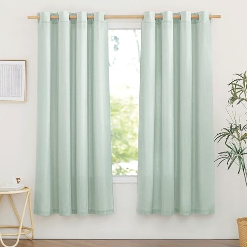 Chyhomenyc ljus salvia gröna gardiner 76 cm längd, falskt linne texturerade små cafégardiner, ljusfiltrering korta gardiner för sovrumsgardiner fönster, 76 x 76 cm, 2 st