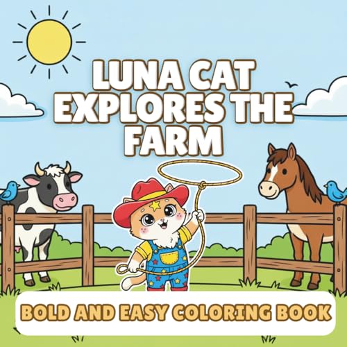 Bold and Easy Farm Animals Coloring Book for Kids: Luna The Cat Explores the Farm | Big & Simple Designs for Ages 4-8 (Square 8.5 x 8.5 Edition)
