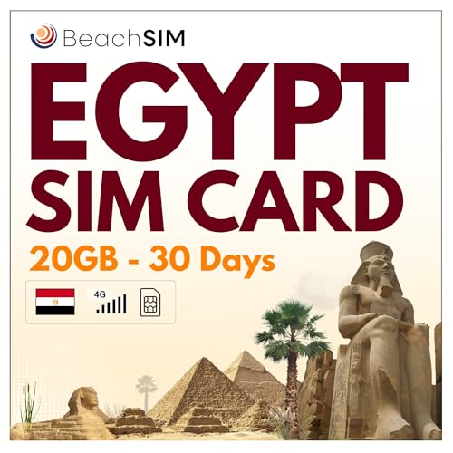 BeachSIM Egypten SIM-kort. 20 GB data med 4G/5G-hastigheter. Endast SIM-kort med förbetald data. Snabb aktivering. Enkel laddning. Fungerar på iOS- och Android-enheter. Giltigt i 30 dagar.