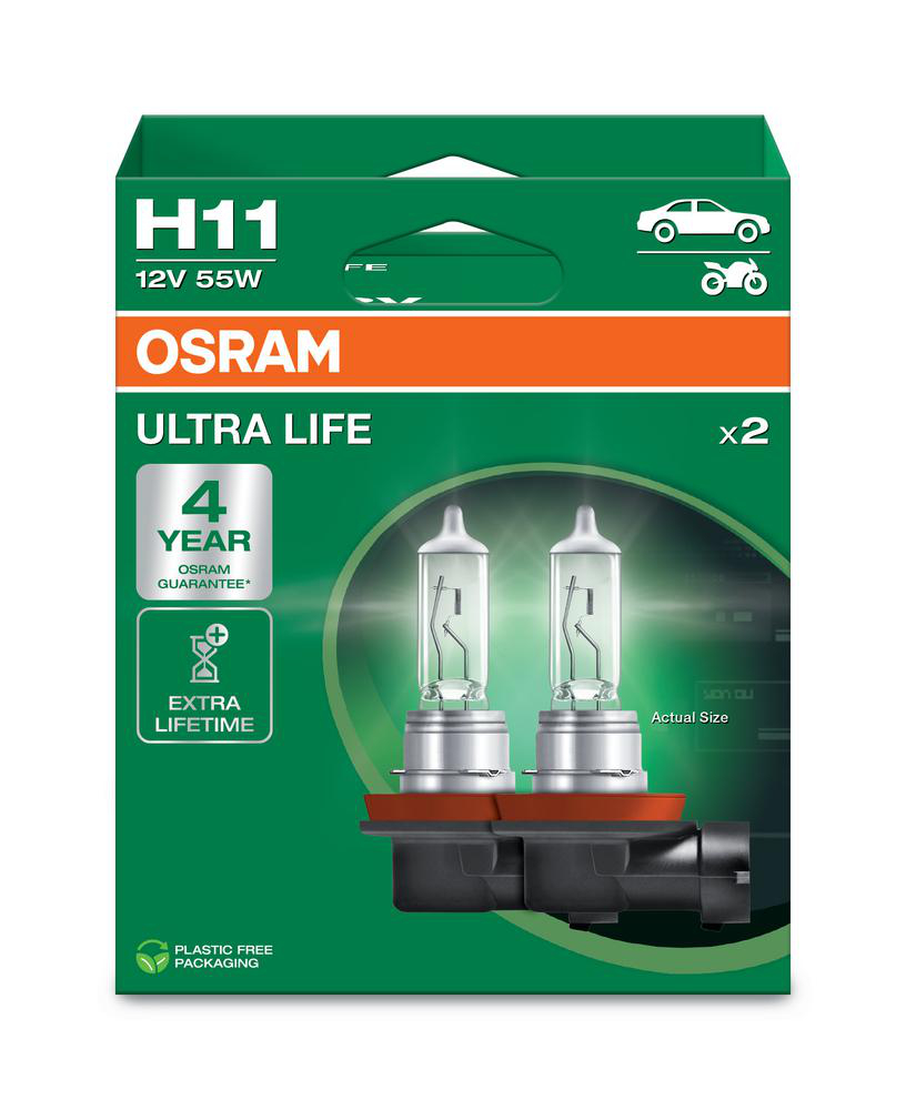Halogenlampa H11 Ultra Life (2-Pack) Osram - VW - Toyota - Ford - Renault - Audi - Mercedes - BMW - Opel