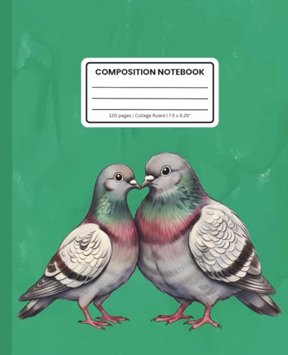 Composition Notebook College Ruled: City Bird Pigeon Pattern on Forest Green: Cute Urban Wildlife Aesthetic Journal for School, Writing & Everyday Notes