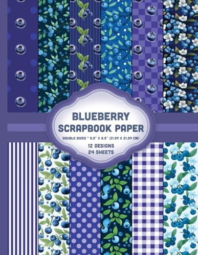 Blueberry Scrapbook Paper: Fruit Berries Forest Dark Purple Blue Sheets for Mixed Media, Journals, Origami, Cards, Invitations - 12 Designs - 2 Sheets/Design - 8.5"x11"