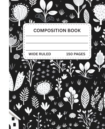 Black and White Woodland Composition Notebook: Minimalist Wide Ruled Journal for Students, Professionals, or Creatives | 150 Pages | Forest Theme with ... and House Pattern (TRST Composition Books)