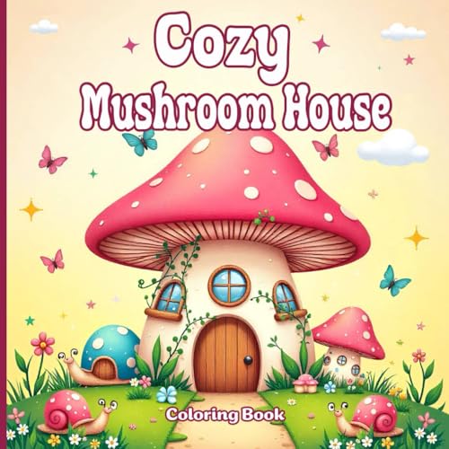 Cozy Mushroom House Coloring Book: 50 Bold and Easy Fantasy Designs of Whimsical , Enchanted Forest Scenes, and Cute Fairy Cottages
