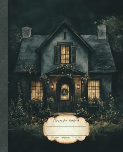Composition Notebook: Premium College Ruled Dark House Notebook | Mystery Forest Illustration | Gift for Nature Lover | Daily School University and Work Journal