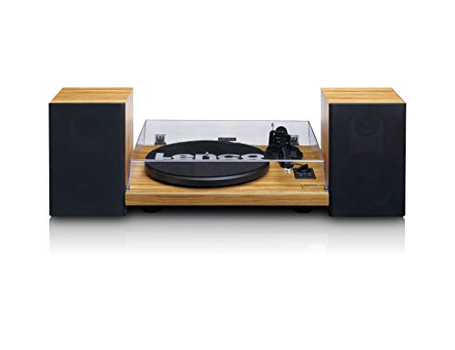 Lenco LS500WD Stereo skivspelare med högtalare, Bluetooth, bältesenhet, 280 mm Metallfack, Förförstärkare, Technica Audio Patron, Svart trä