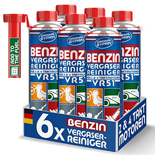 SYPRIN Original förgasarrengörare VR51 för 2-takts 4-takts bensinmotorer | snabbt och enkelt | lämplig för motorcykel, trädgårdsredskap och fordon | bensintillsats för förgasarrengöring 6X