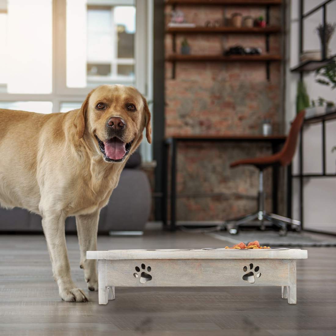 Förhöjd Foderstation 2x2L Rostfritt Stål, Vit