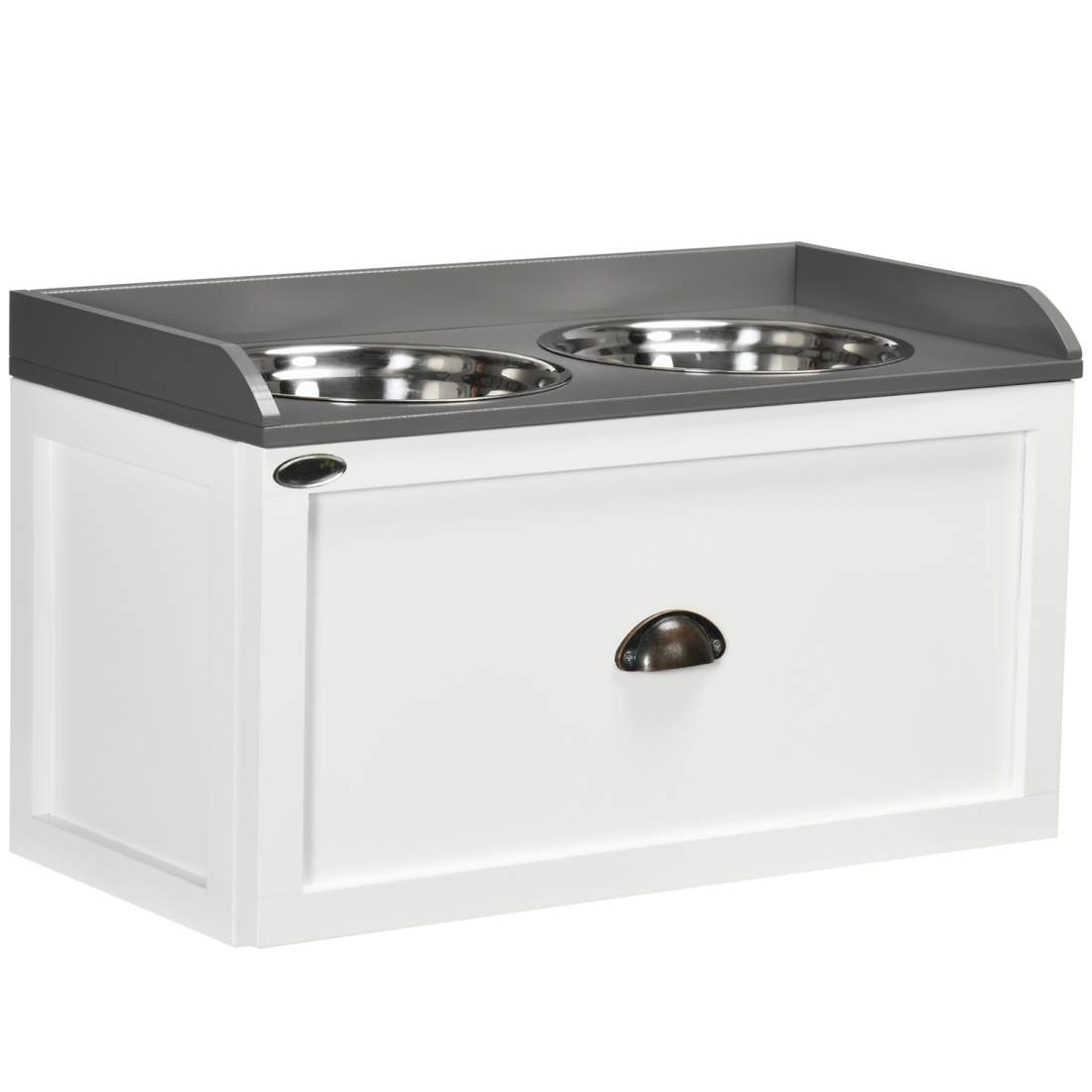Förhöjd hundmatningsstation, 2 skålar, 44L förvaring, grå